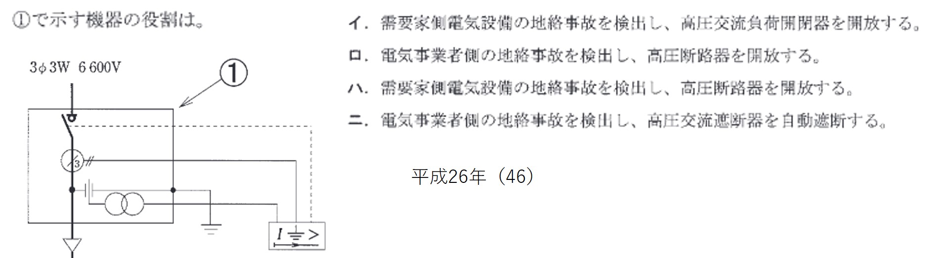 | (2) | イ | 高圧負荷開閉器は地絡事故を検出すると回路を開放する。 |
