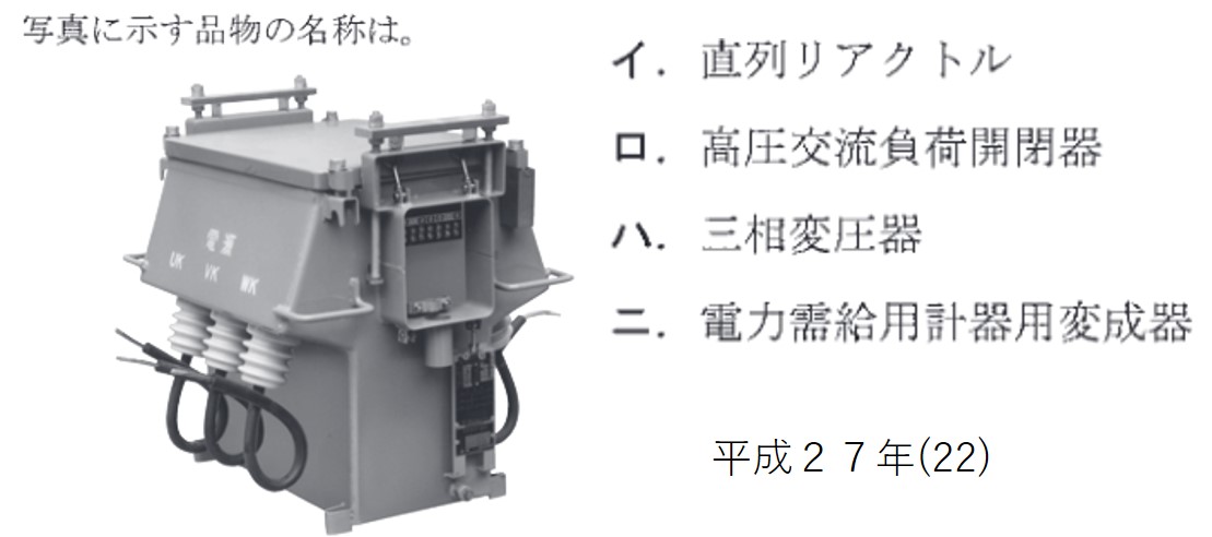| (1) | 二 | 写真の機器は電力需給用計器用変成器である。 | |