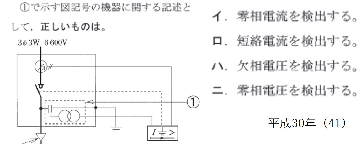 | (2) | 二 | ➀の機器は零相基準入力装置であり、地絡発生時の零相電圧を検出する。 | |