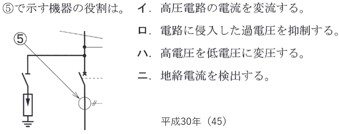 | (3) | イ | ➄に示す機器は変流器で大電流を小電流に変流する。 | |