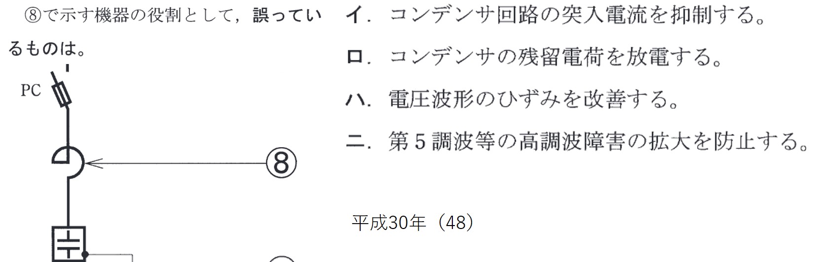 | (4) | ロ | 直列リアクトルにはコンデンサの放電する役割はない。 |