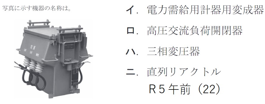 | (1) | イ | 写真の機器は電力需給用計器用変成器(VCT)である。 | |