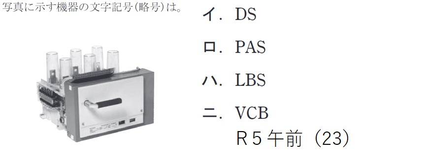 | (2) | 二 | 写真の機器は高圧真空遮断器(VCB)である。 | |