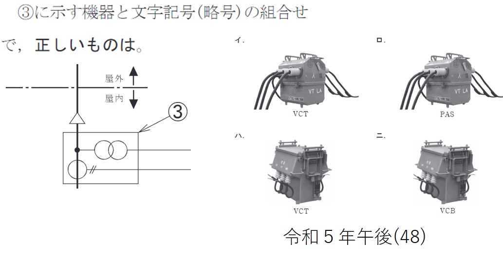 | (5) | ハ | 設置する機器は電力需給用計器用変成器(VCT)である。 | |